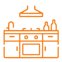 Modern kitchen layout. Granite platform with stainless steel sink branded C.P fitting